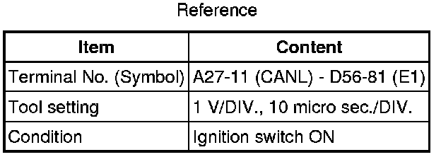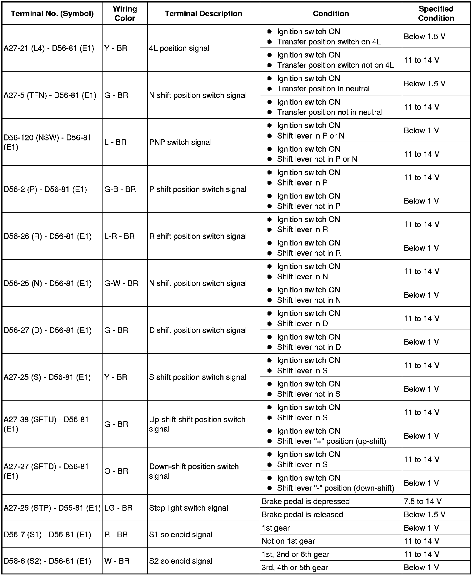 In the table, first follow the information under "Condition". Look under "Terminal No. (Symbol)" for the terminals to be inspected. The standard voltage between the terminals is shown under "Specified Condition".
