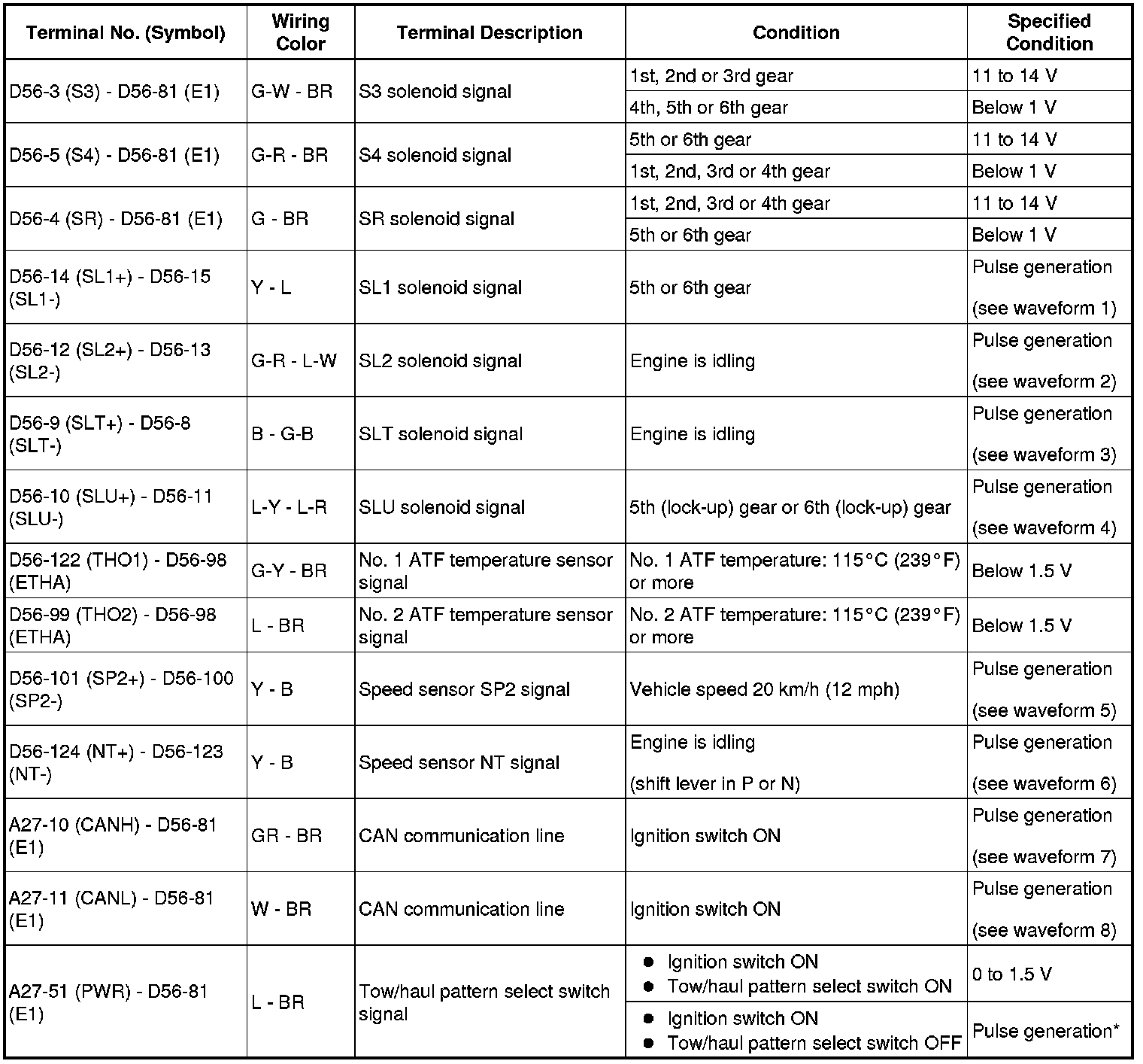 AB60F AUTOMATIC TRANSMISSION / TRANSAXLE: AUTOMATIC TRANSMISSION SYSTEM: TERMINALS OF ECM