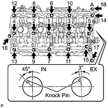 Install the camshaft housing, and install the 18 bolts in the order shown in the illustration.