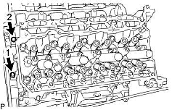 Install and uniformly tighten the 2 cylinder head bolts.