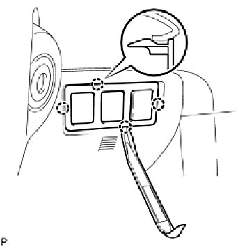 (a) Using a moulding remover, disengage the 4 claws and remove the No. 2 switch hole base.
