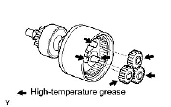 (a) Apply high-temperature grease to the starter pinion drive lever, as shown in the illustration.