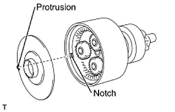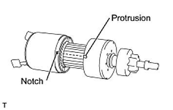 NOTE: Check that the protrusion of the starter armature plate fits over the notch of the starter center bearing clutch sub-assembly.