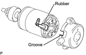 (d) Align the starter commutator end frame rubber with the groove of the starter yoke.