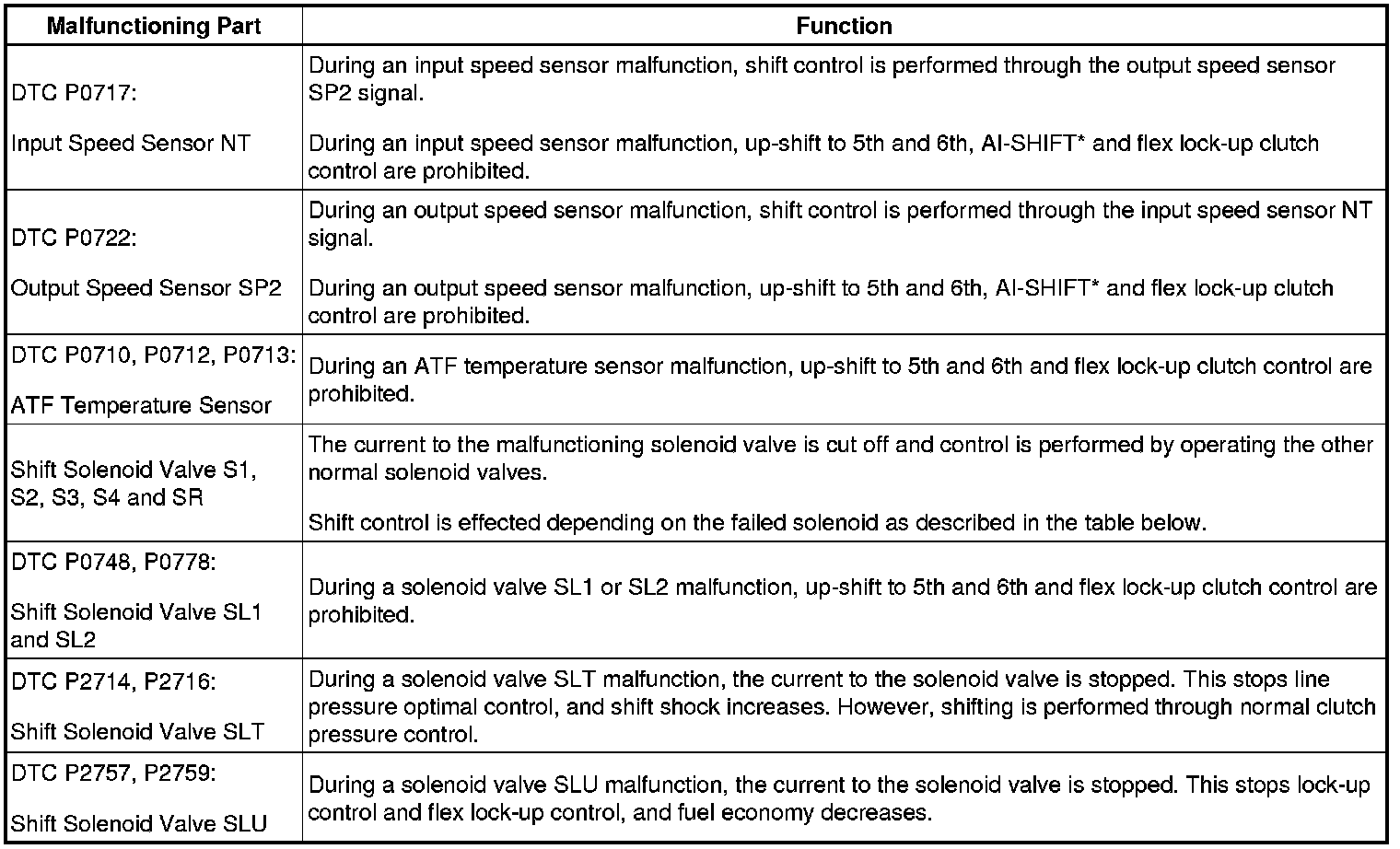 AB60F AUTOMATIC TRANSMISSION / TRANSAXLE: AUTOMATIC TRANSMISSION SYSTEM: FAIL-SAFE CHART