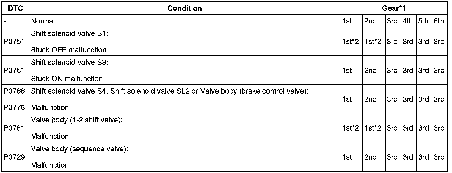 - *1: Actual gear shift (gear position) under fail-safe operation.
