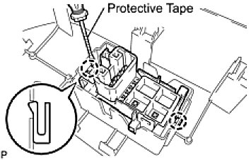 (a) Using a screwdriver with its tip wrapped in protective tape, disengage the 2 claws and remove the power window regulator switch.