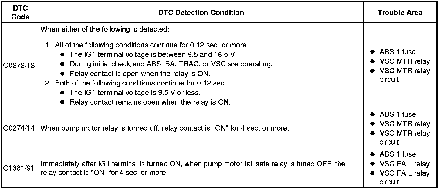 DTC C0273/13 - Open or Short Circuit in ABS Motor Relay Circuit