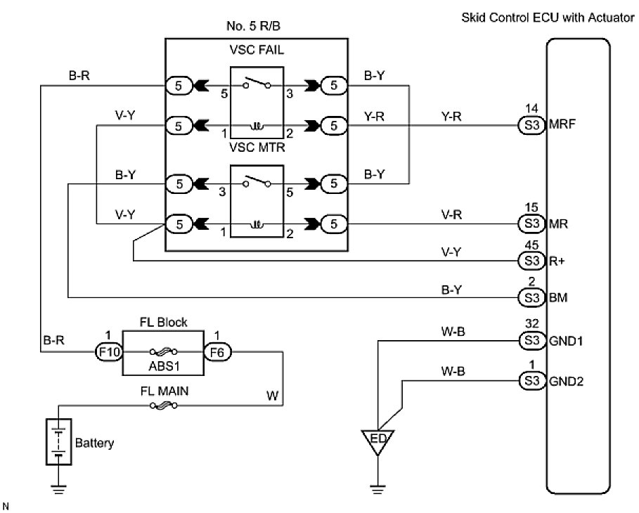 - The skid control ECU inspects the motor relay circuit when the stop light switch is turned off and the vehicle is running at a speed of 6 km/h (4mph) or more.