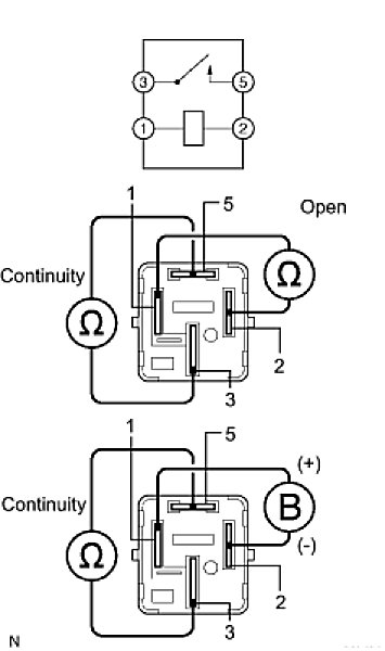 (b) Apply battery positive voltage between terminals 1 and 2.