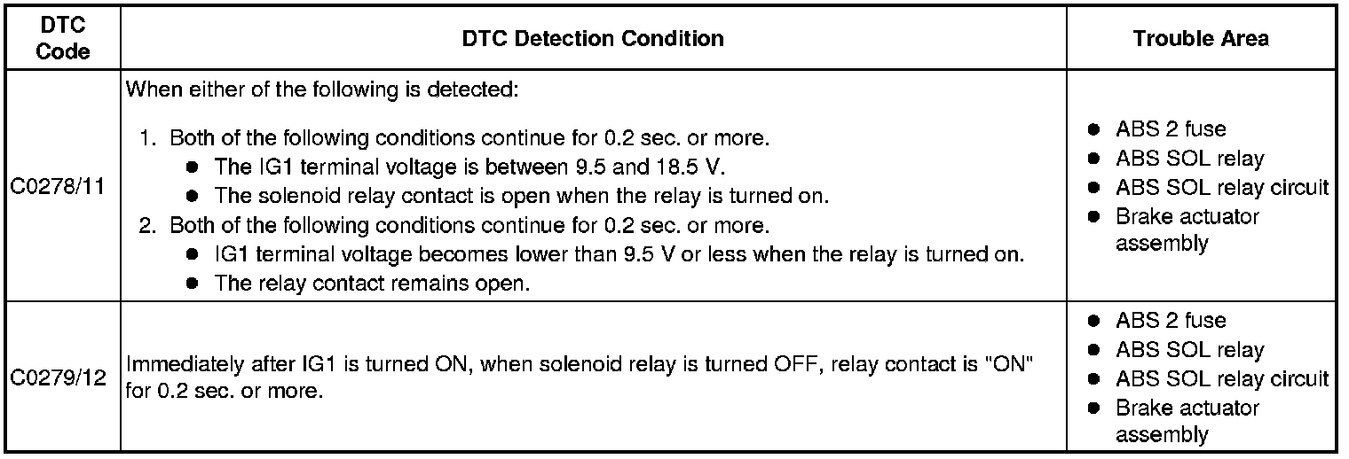 BRAKE CONTROL: VEHICLE STABILITY CONTROL SYSTEM: C0278/11: Open or Short Circuit in ABS Solenoid Relay Circuit