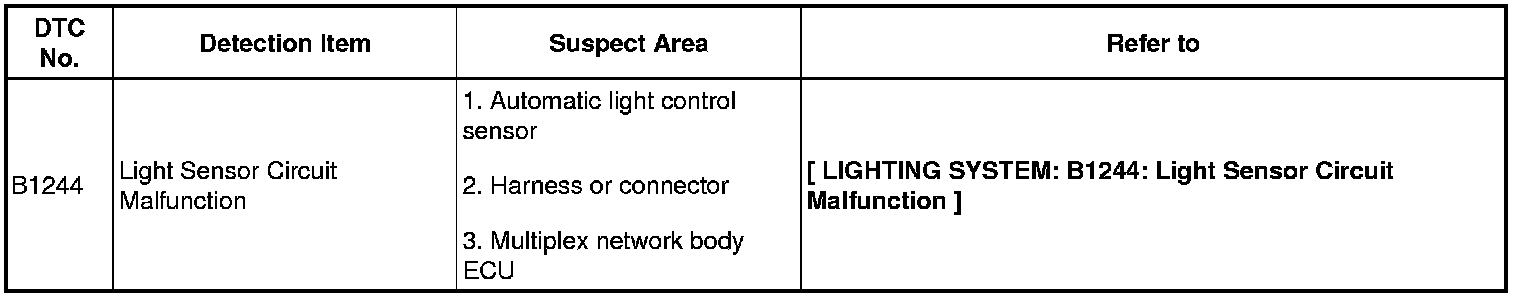 LIGHTING: LIGHTING SYSTEM: DIAGNOSTIC TROUBLE CODE CHART