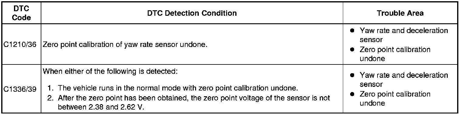 DTC C1210/36 - Zero Point Calibration of Yaw Rate Sensor Undone