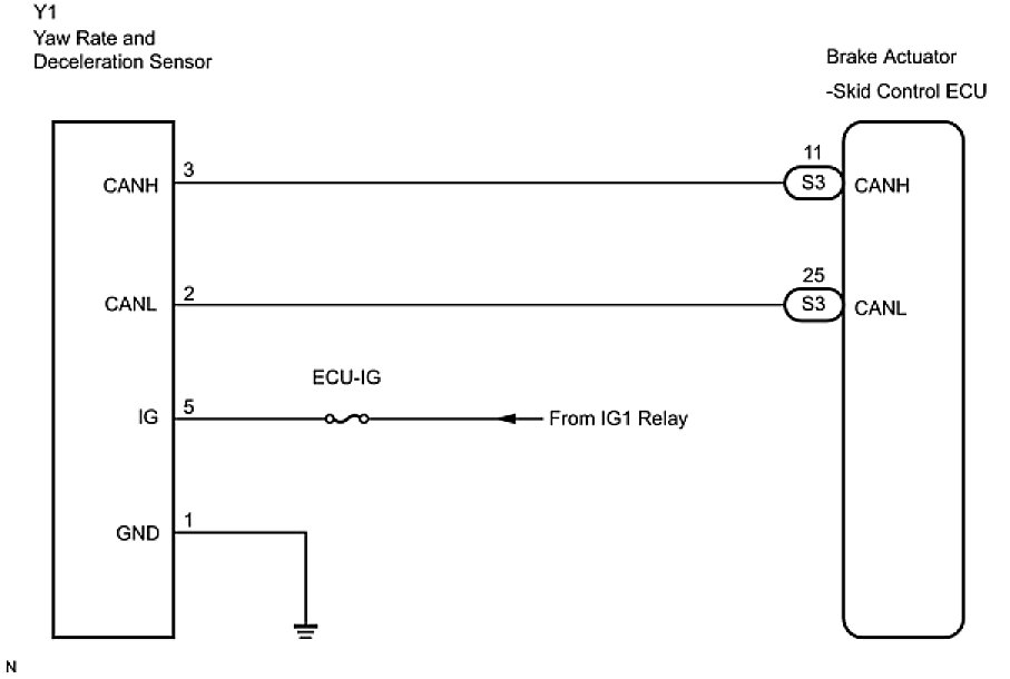 The skid control ECU receives signals from the yaw rate sensor via CAN communication system.