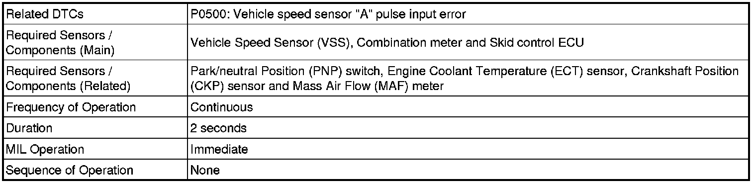 2GR-FE ENGINE CONTROL SYSTEM: SFI SYSTEM: P0500: Vehicle Speed Sensor "A"