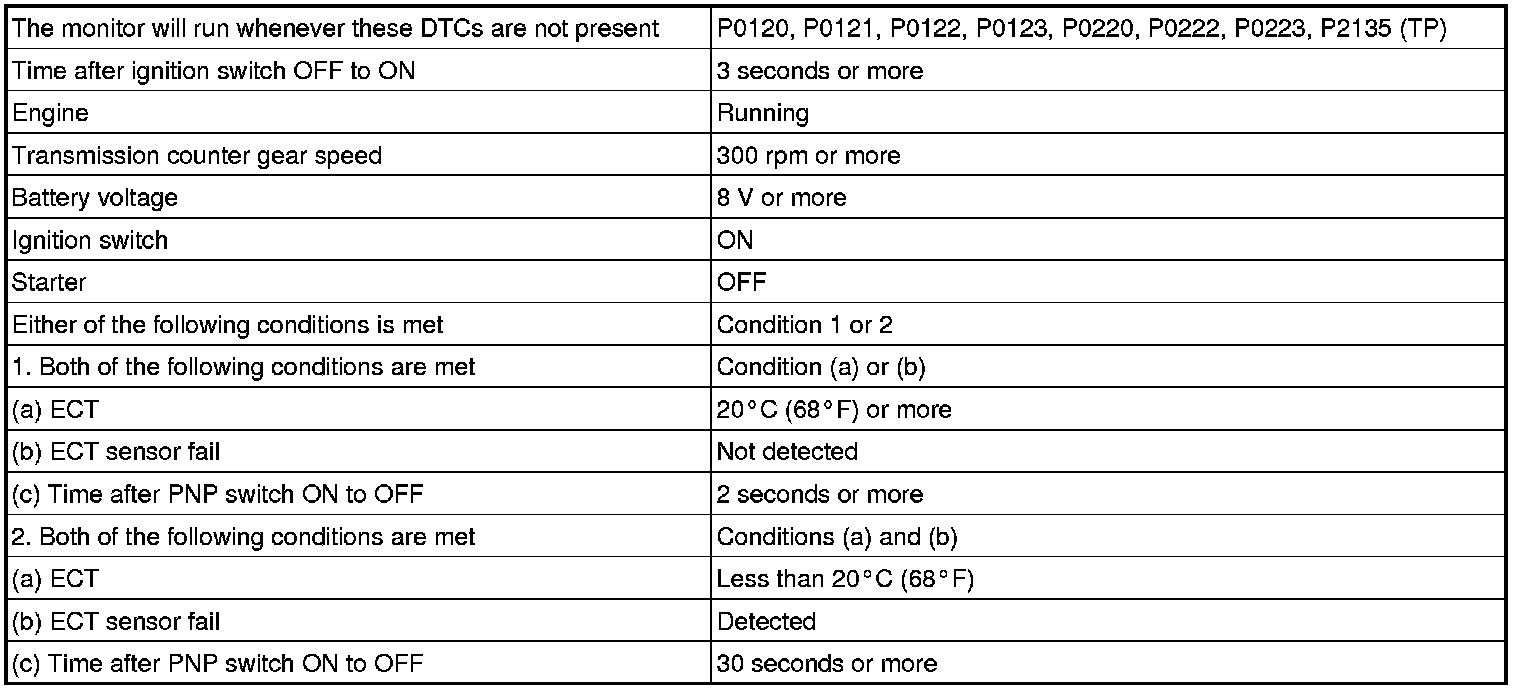 The ECM assumes that the vehicle is being driven when the transmission counter gear indicates more than 300 rpm and over 30 seconds have passed since the park / neutral position switch was turned OFF. If there is no signal from the vehicle speed sensor with these conditions satisfied, the ECM concludes that the vehicle speed sensor is malfunctioning. The ECM will turn on the MIL and a DTC will be set.