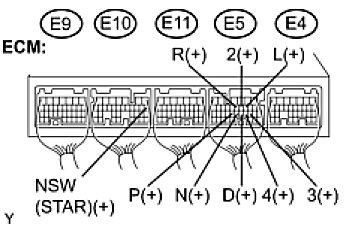 3. CHECK HARNESS AND CONNECTOR (PARK/NEUTRAL POSITION SWITCH - ECM)