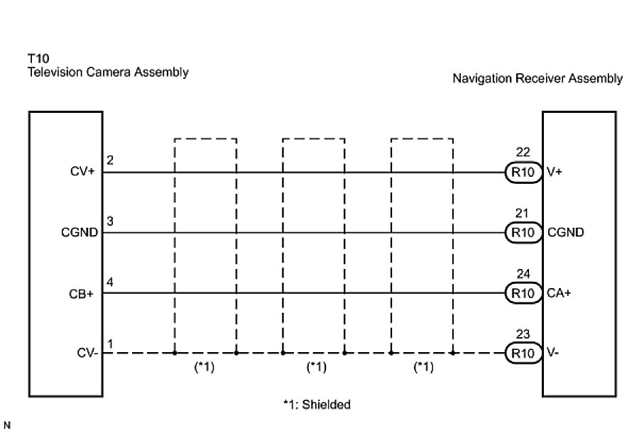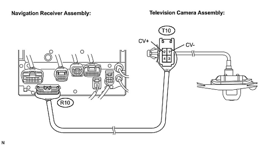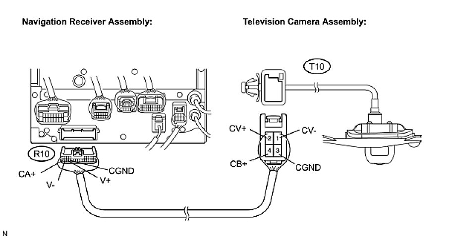 PARK ASSIST / MONITORING: REAR VIEW MONITOR SYSTEM: Display Signal Circuit between Navigation Receiver Assembly and Television Camera Assembly