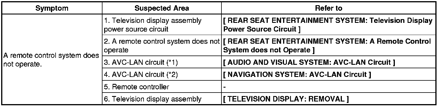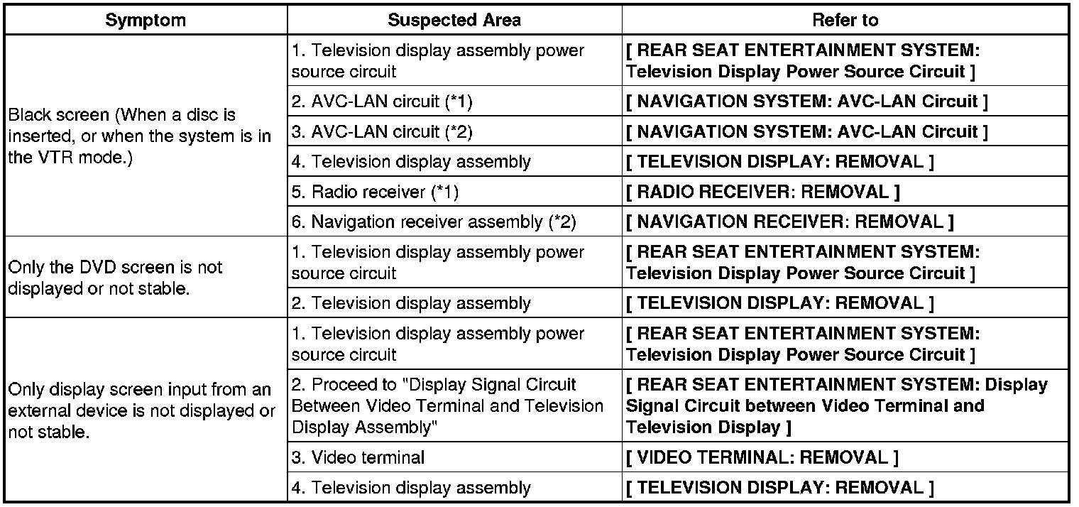 AUDIO / VISUAL: REAR SEAT ENTERTAINMENT SYSTEM: PROBLEM SYMPTOMS TABLE