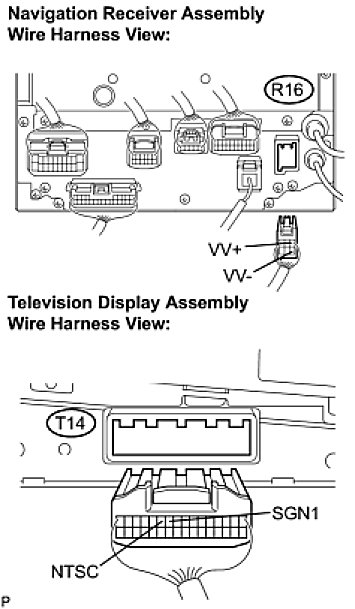 (a) Disconnect the navigation receiver assembly connector R16 and television display assembly connector T14.