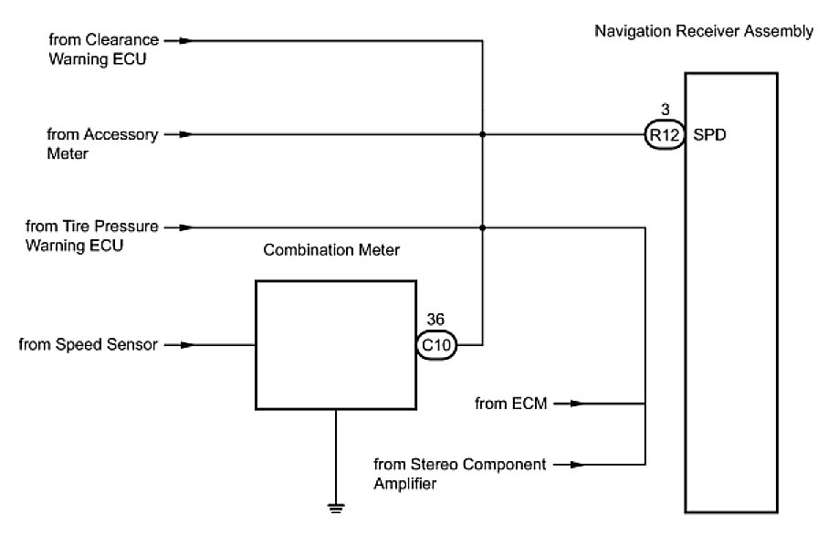 Vehicle Speed Signal Circuit Between Navigation Receiver Assembly and Combination Meter
