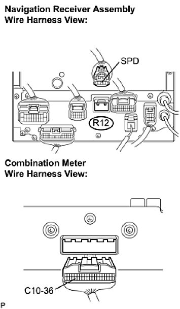 (a) Disconnect the navigation receiver assembly connector R12 and combination meter connector C10.