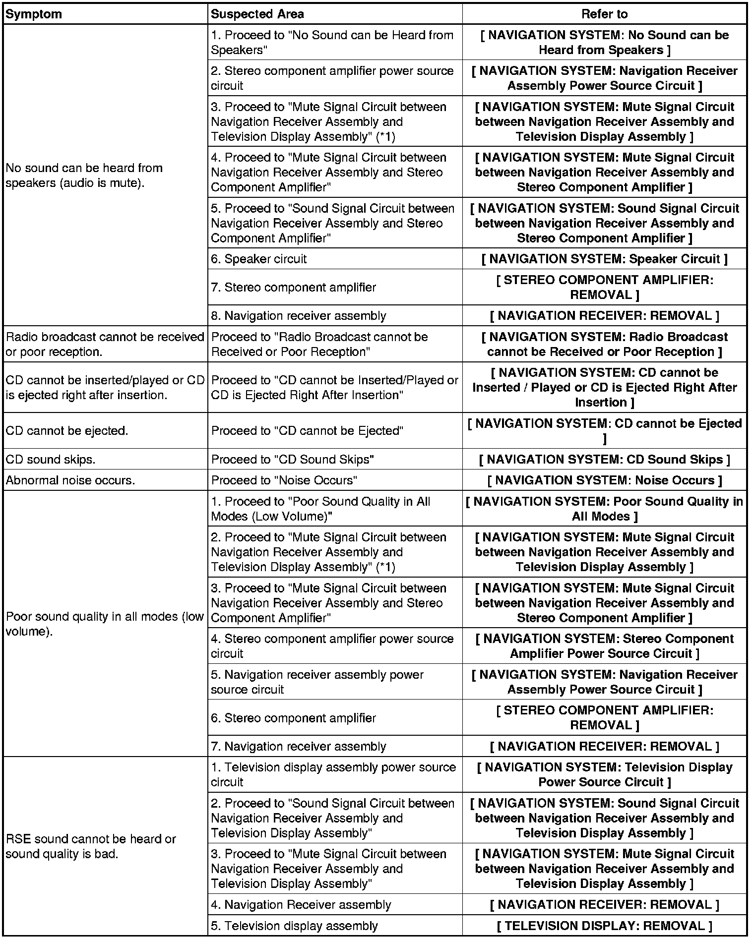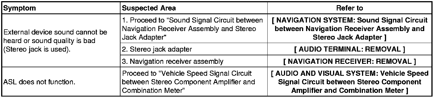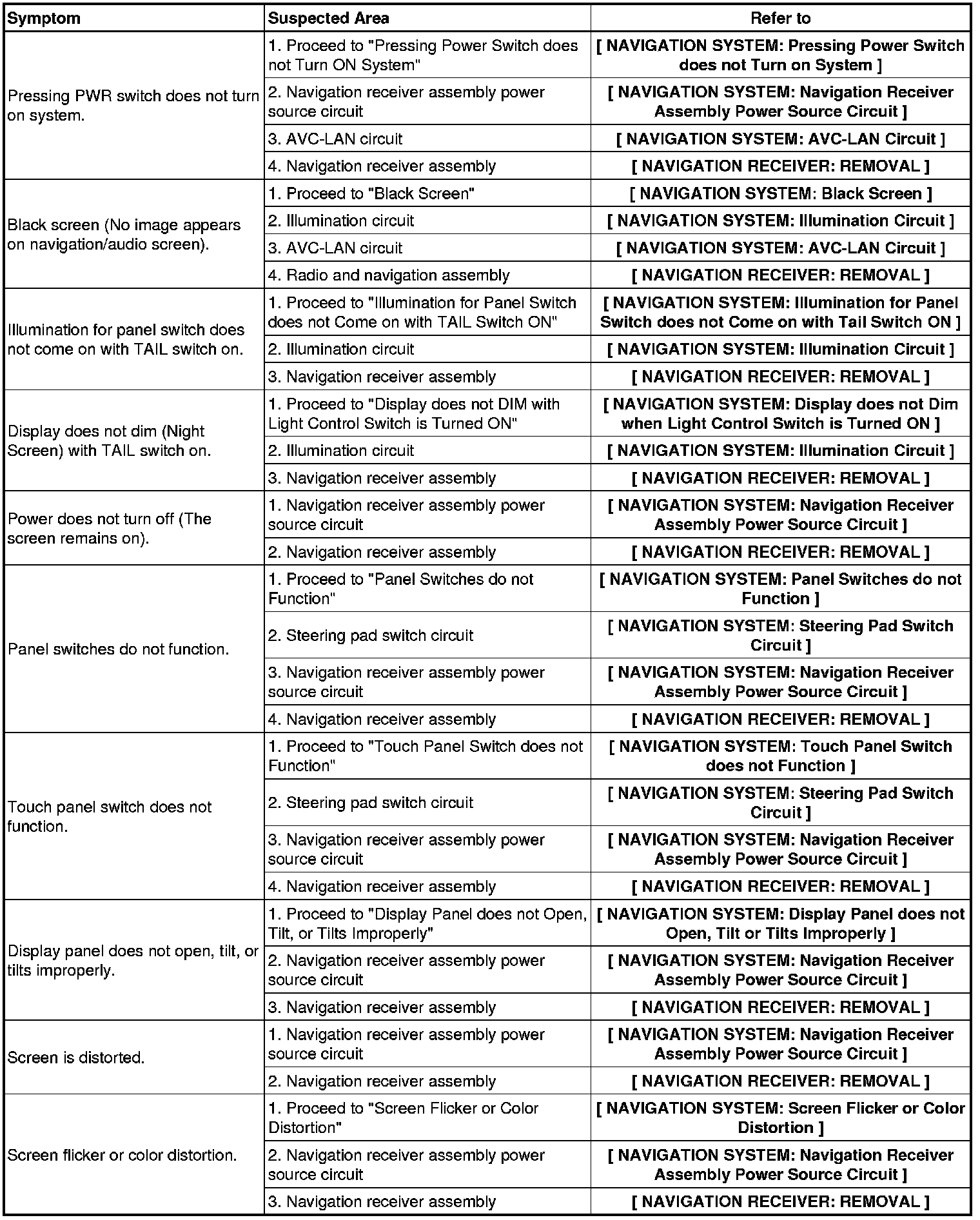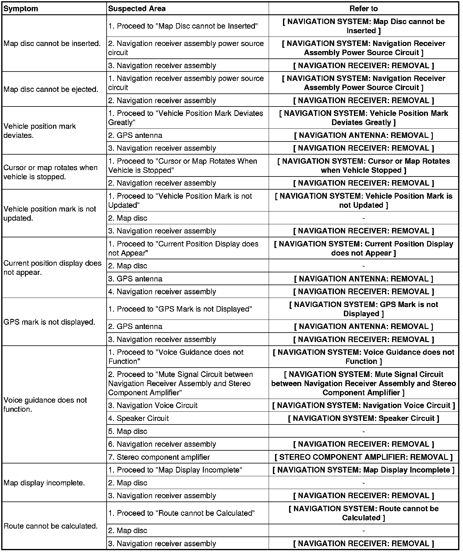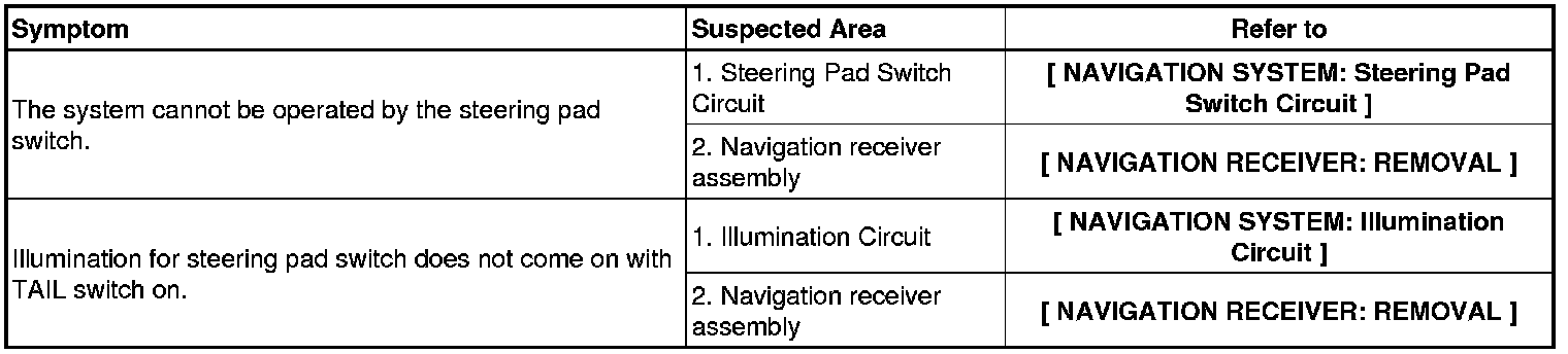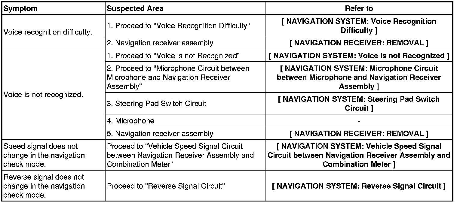NAVIGATION: NAVIGATION SYSTEM: PROBLEM SYMPTOMS TABLE