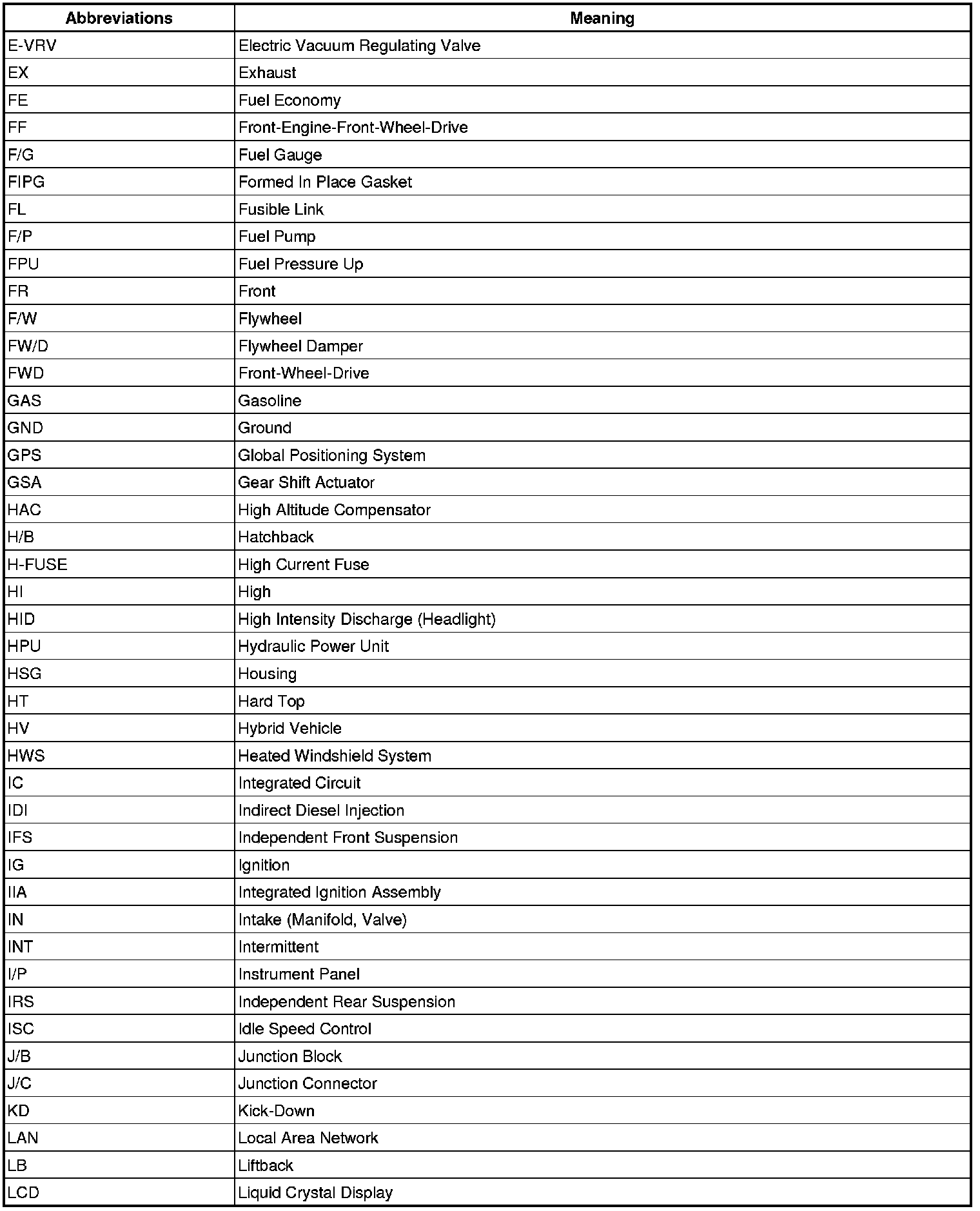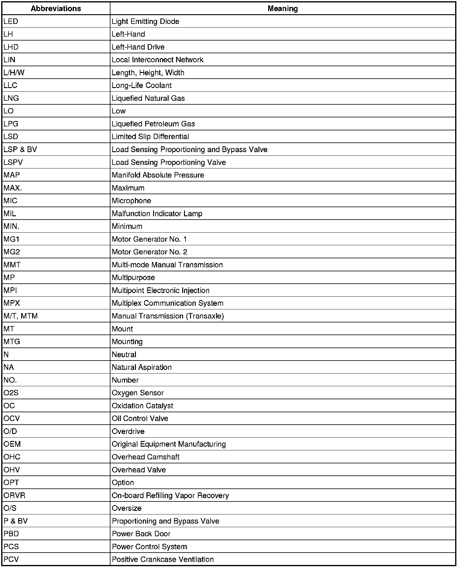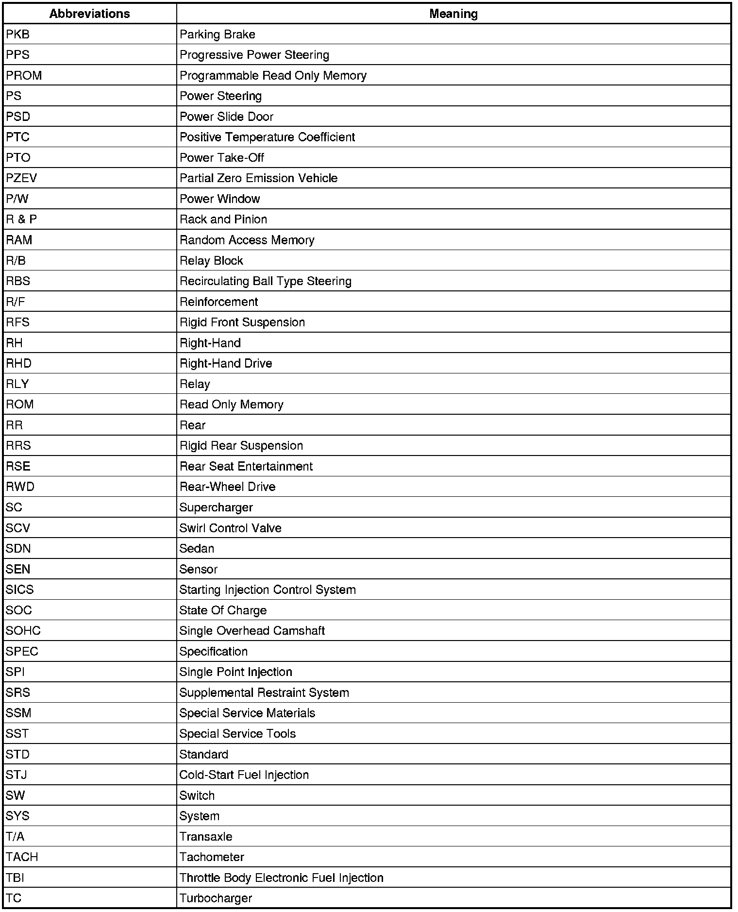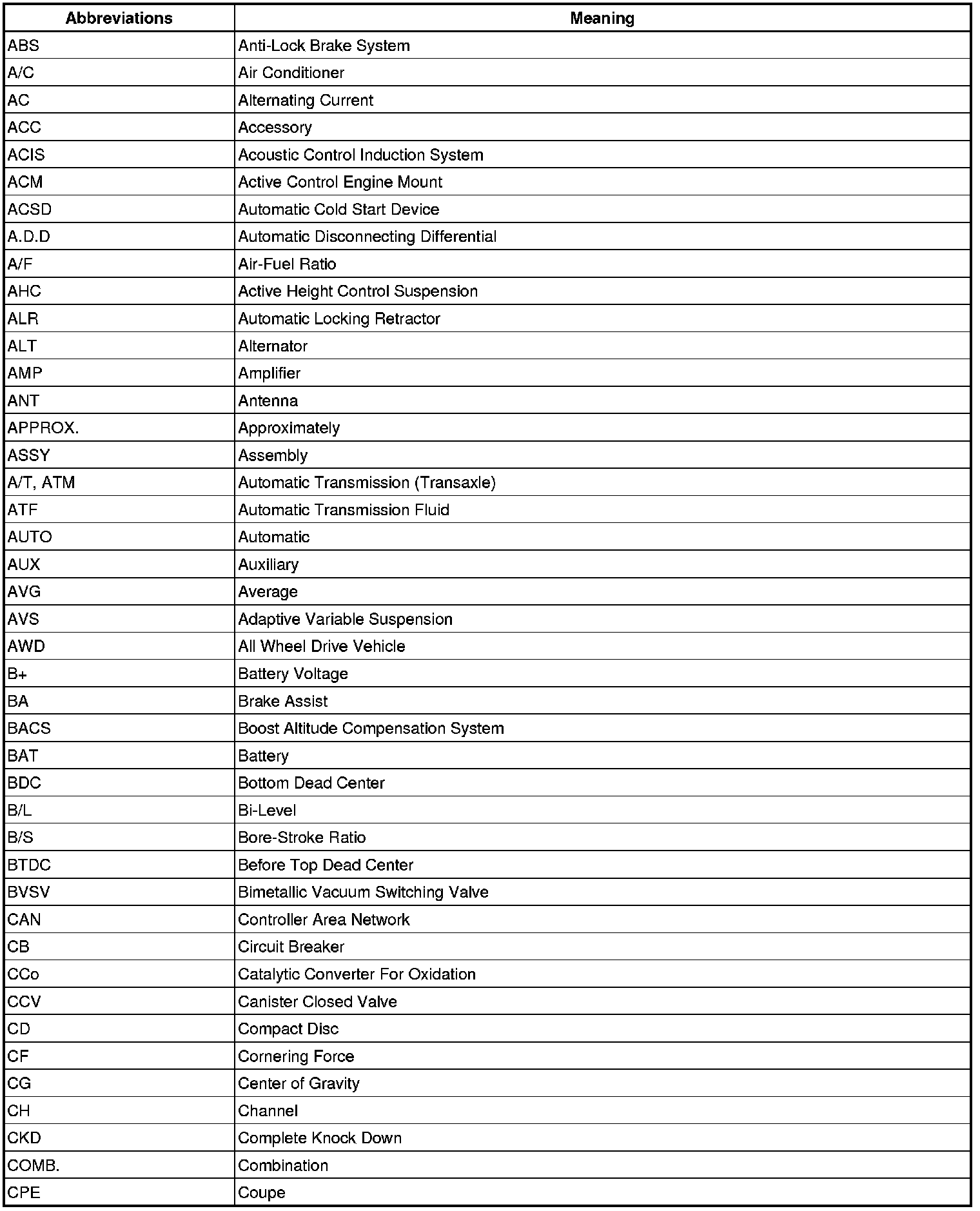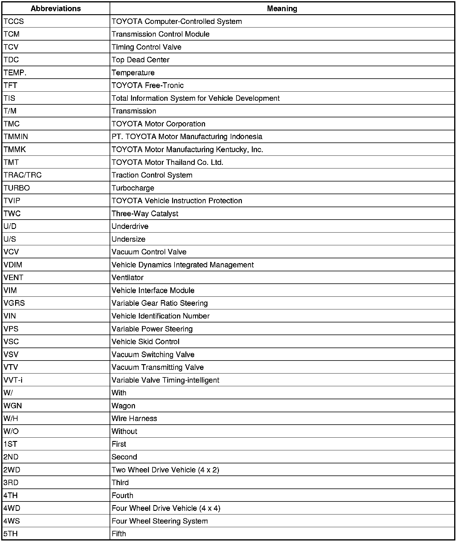ABBREVIATIONS USED IN SERVICE PROCEDURES