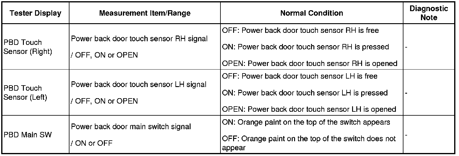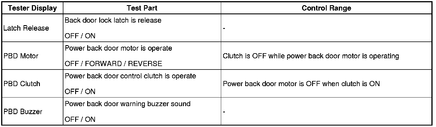 ENGINE HOOD / DOOR: POWER BACK DOOR SYSTEM: DATA LIST / ACTIVE TEST