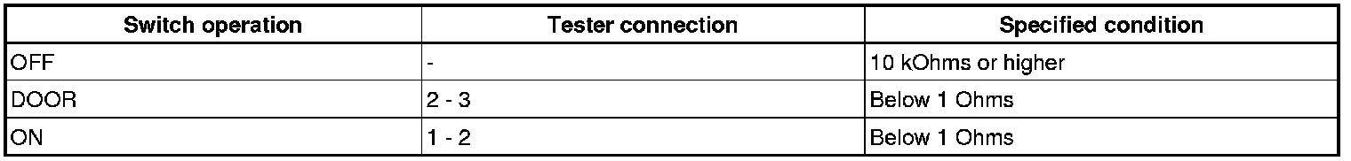 (1) Check the resistance between the terminals at each switch position as shown in the chart.