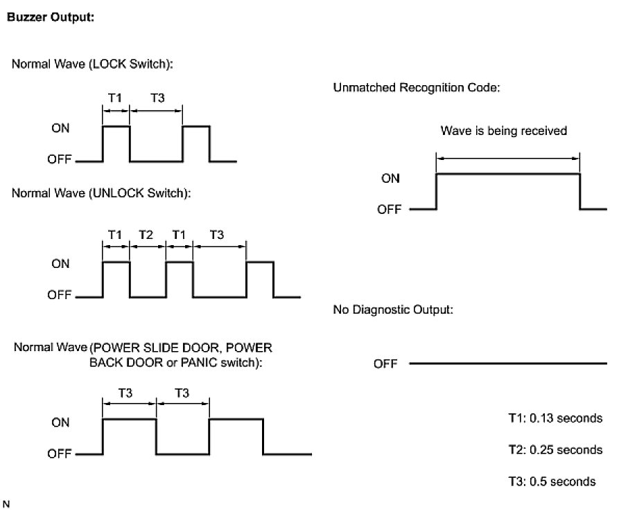 (a) Inspect the diagnosis outputs when the door control transmitter switch is held down (The diagnosis outputs can be checked with the sound of the wireless door lock buzzer).