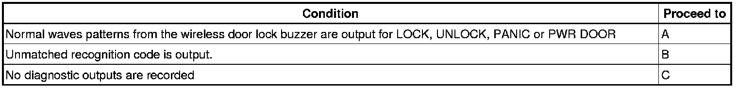 (a) Check the wireless door lock control system Component Tests and General Diagnostics.