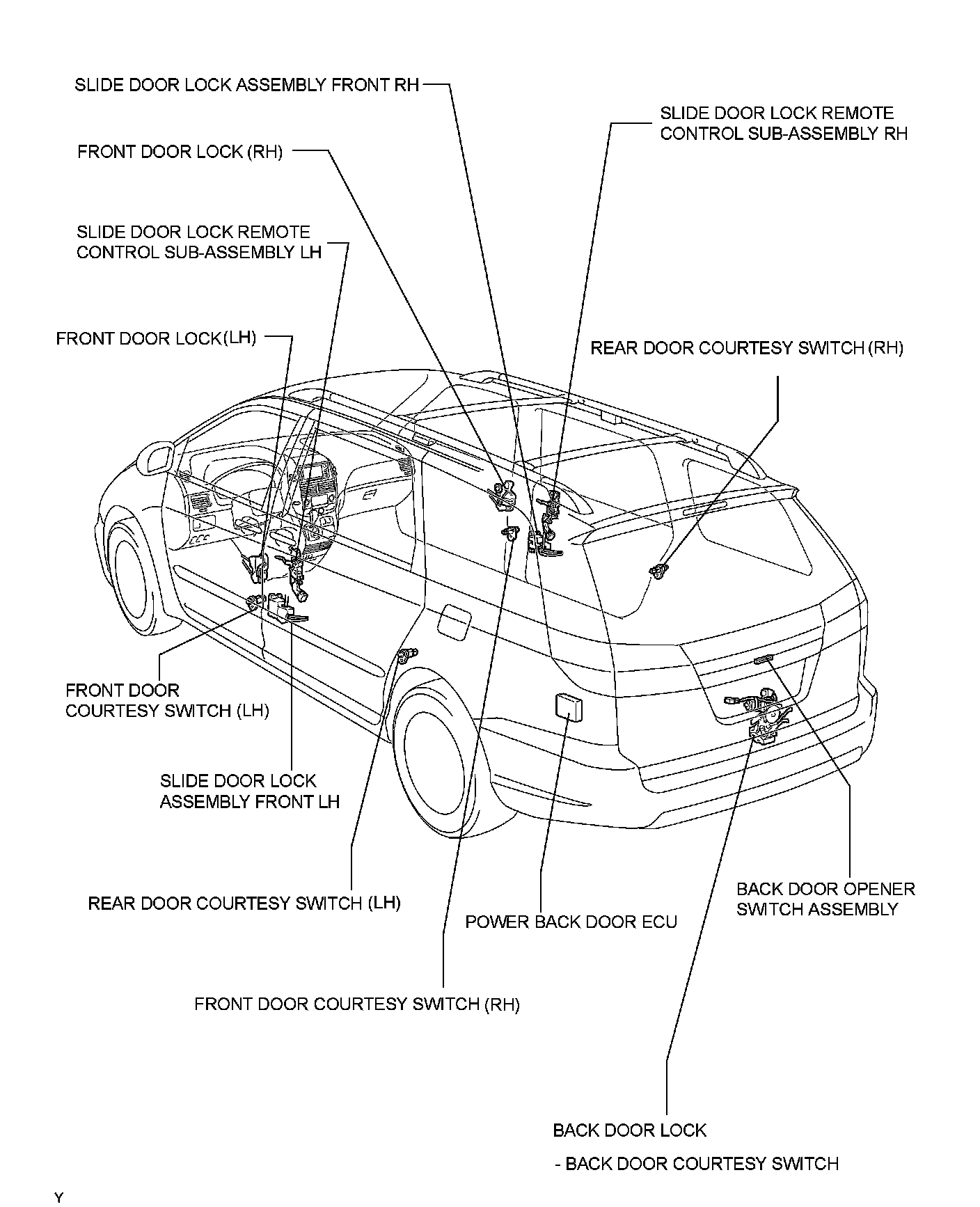 DOOR LOCK: POWER DOOR LOCK CONTROL SYSTEM: PARTS LOCATION