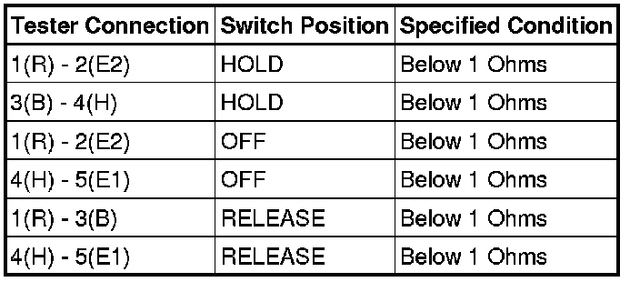 If the result is not as specified, replace the switch.