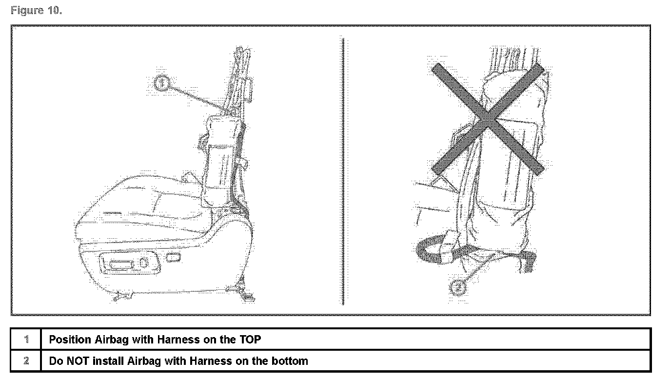 A. Place the side airbag into the seat frame with the wire harness on the top.