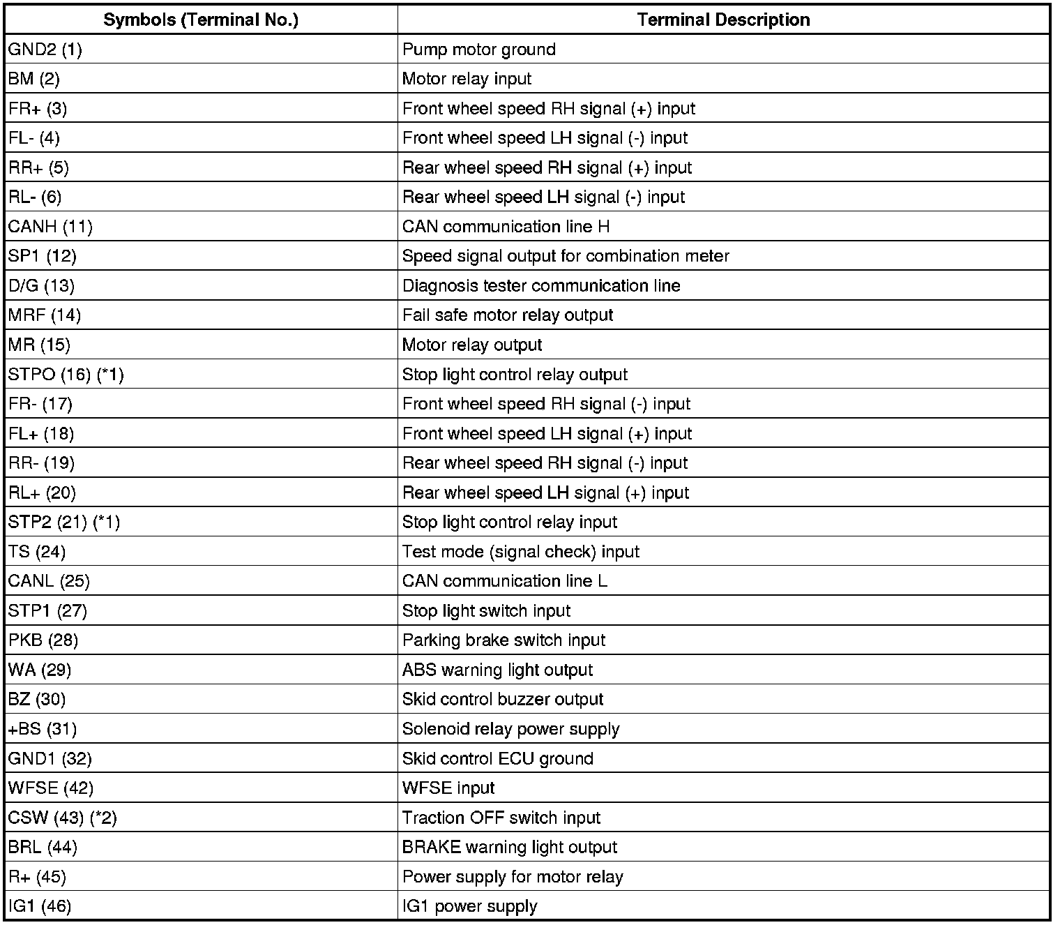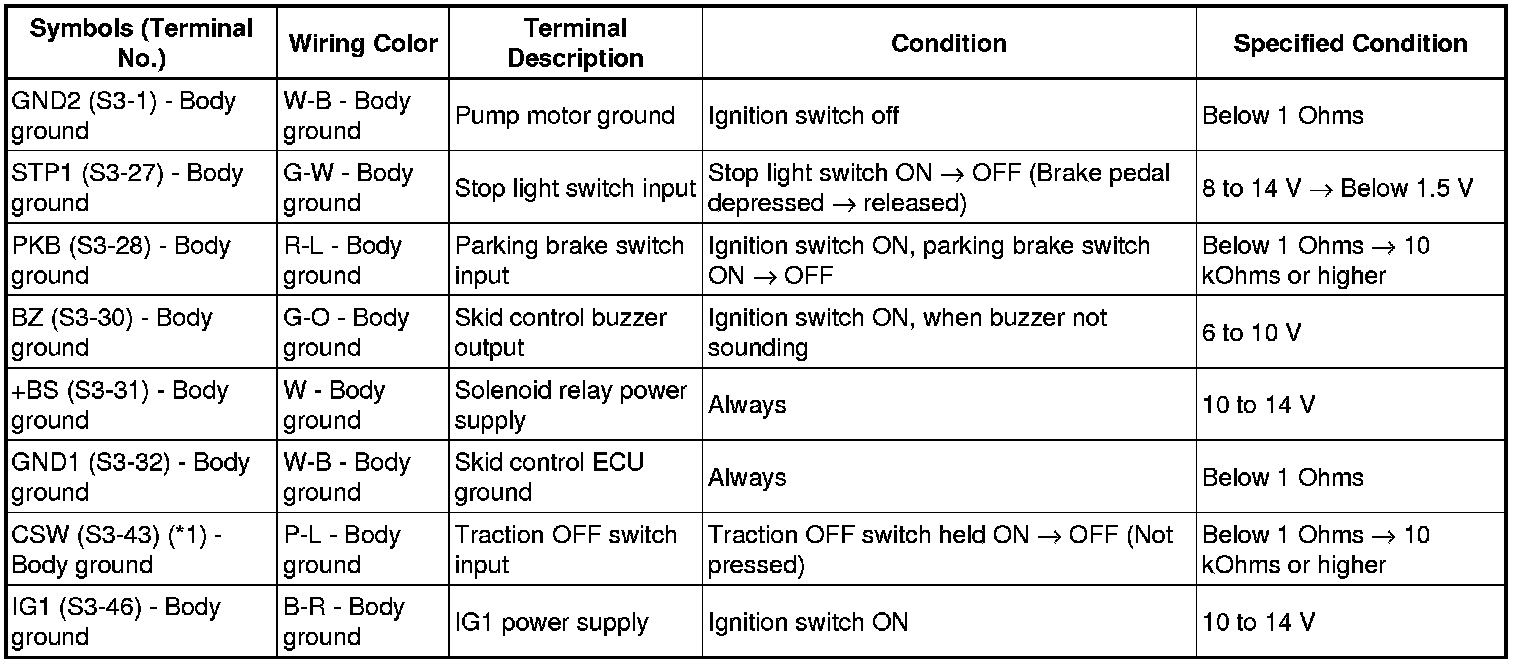 BRAKE CONTROL: VEHICLE STABILITY CONTROL SYSTEM: TERMINALS OF ECU