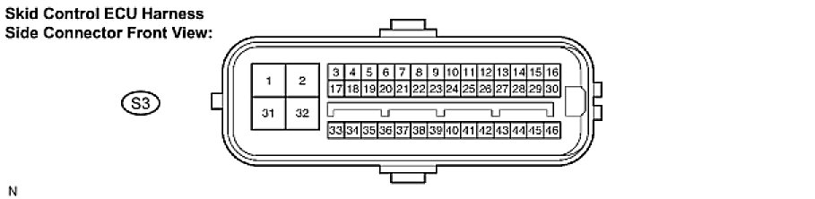 HINT: Voltage cannot be measured with the connector connected to the skid control ECU because the connector is watertight.