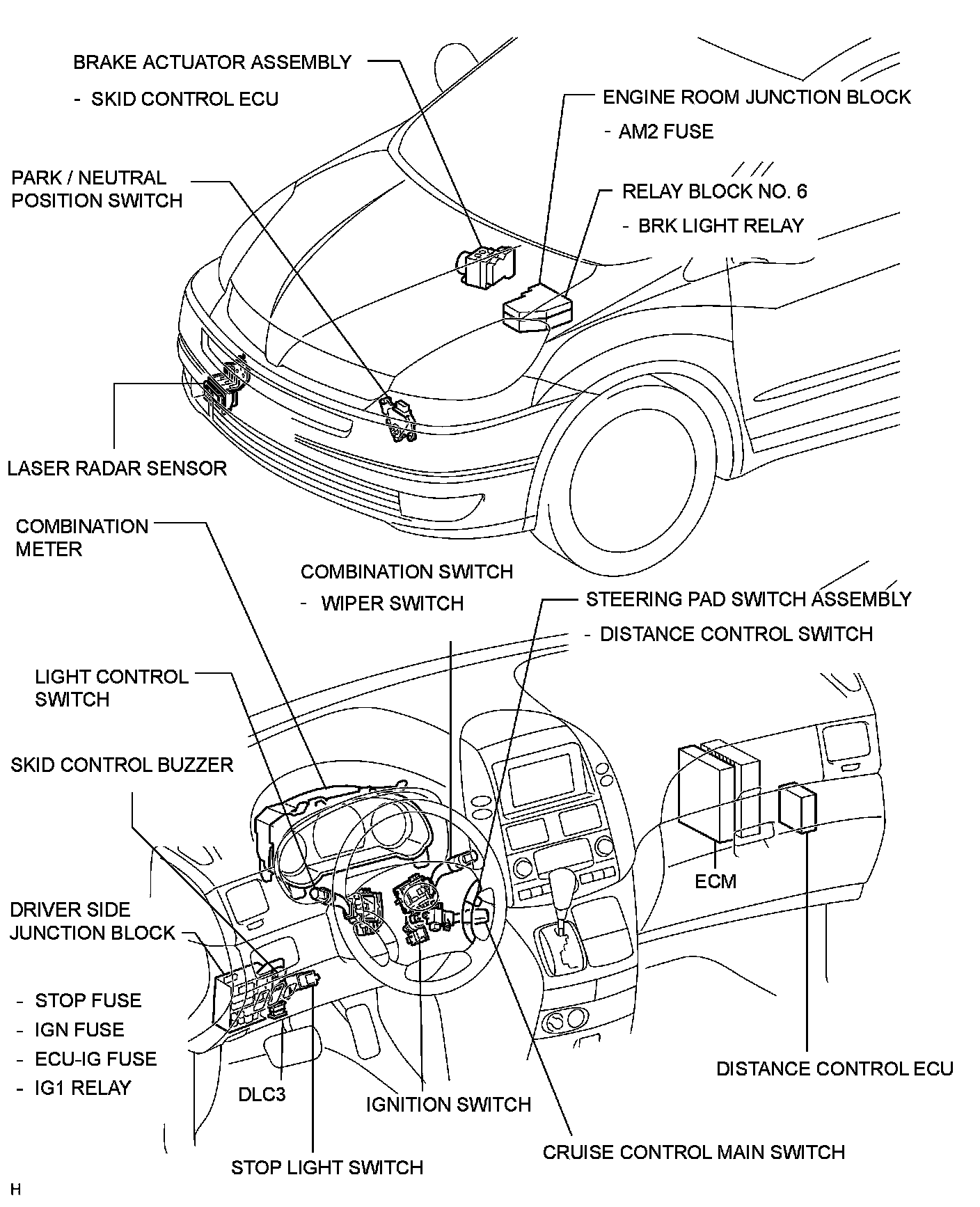 CRUISE CONTROL: DYNAMIC LASER CRUISE CONTROL SYSTEM: PARTS LOCATION