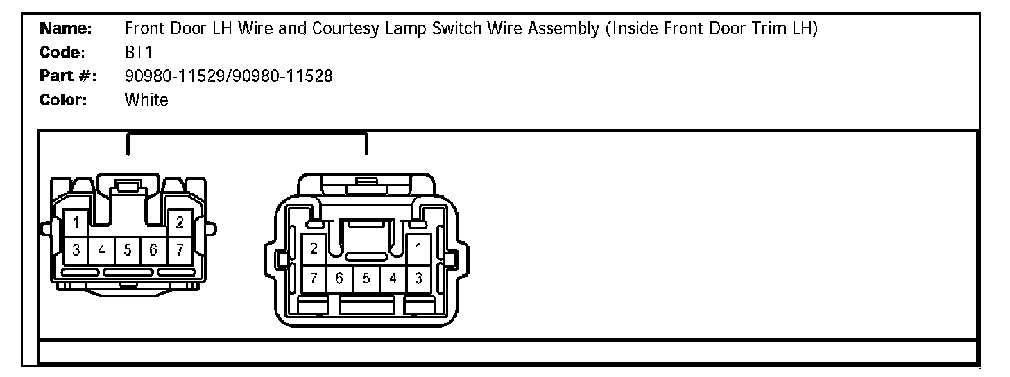BT1 (Front Door LH Wire And Courtesy Lamp Switch Wire Assembly (Inside Front Door Trim LH)):