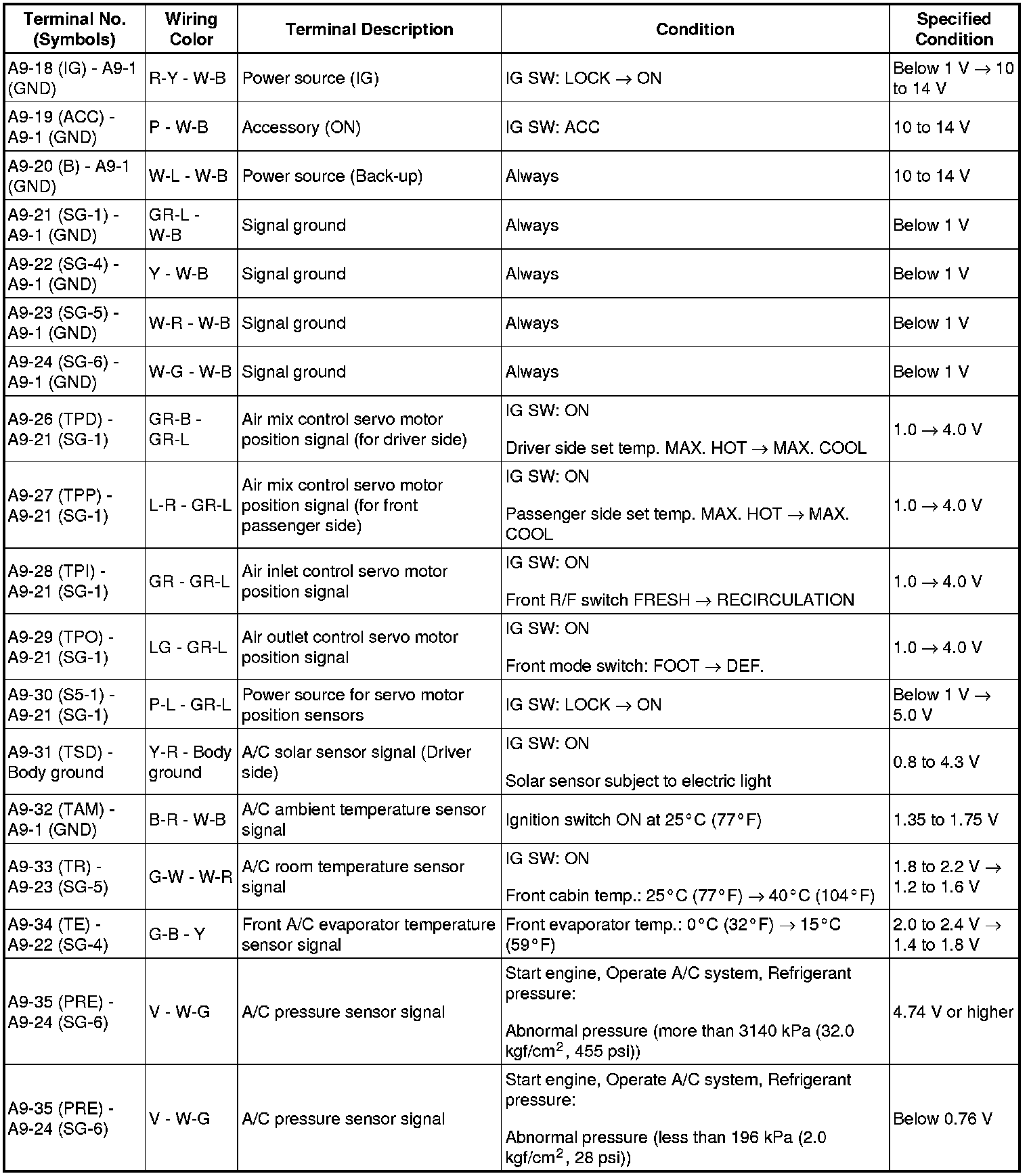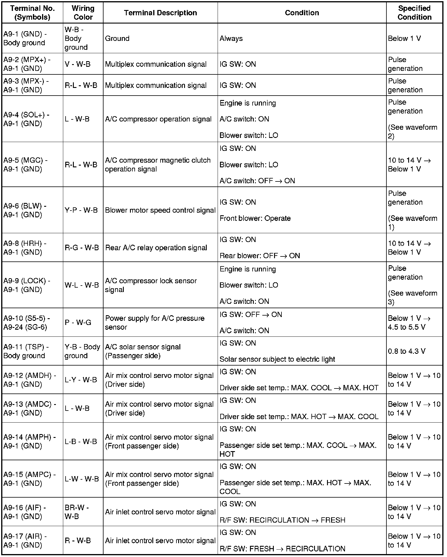 AIR CONDITIONING: AIR CONDITIONING SYSTEM (for Automatic Air Conditioning System): TERMINALS OF ECU