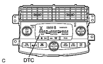 (b) Read the codes displayed on the panel. Refer to the list of codes Air Conditioning System (for Automatic Air Conditioning System) when reading the codes. (Trouble codes are output at the temperature display.)