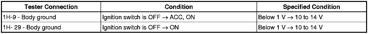 (a) Measure voltage between the terminal 1H-10 of the instrument panel junction block assembly and body ground.