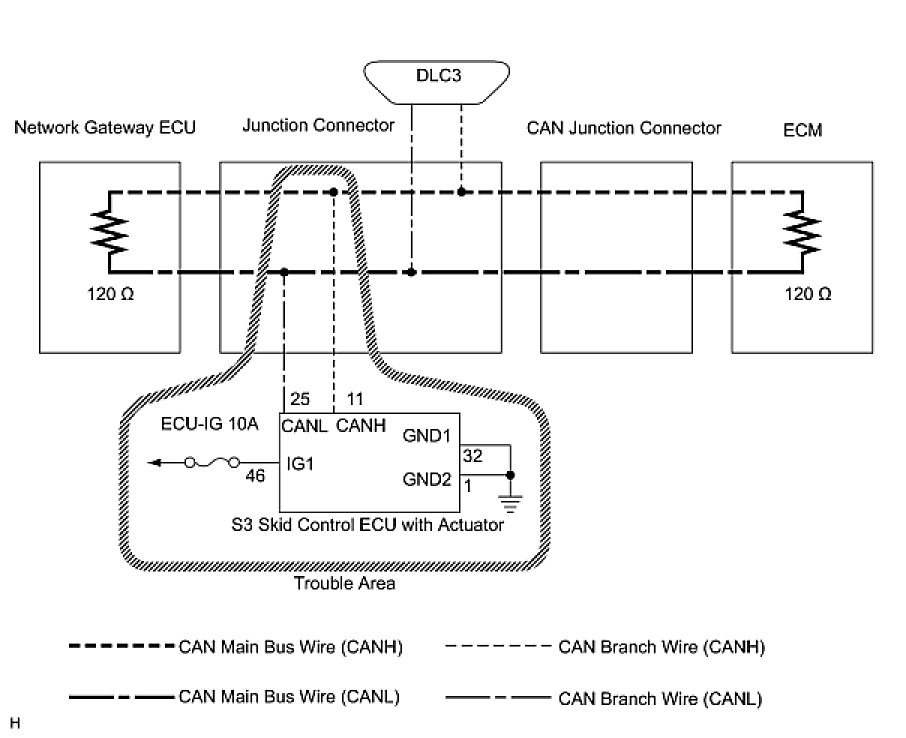 1. CHECK OPEN IN CAN BUS WIRE (SKID CONTROL ECU BRANCH WIRE)