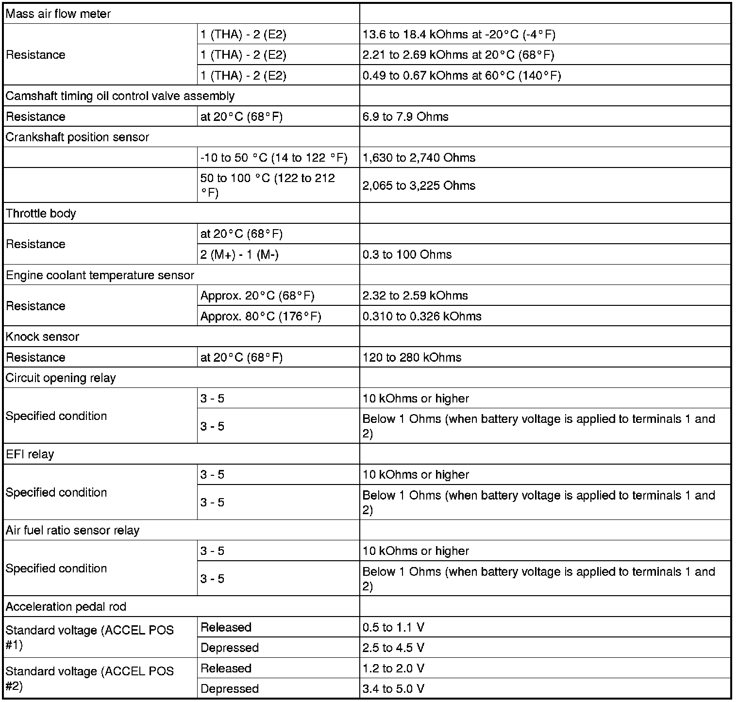 SERVICE SPECIFICATIONS: 2GR-FE ENGINE CONTROL SYSTEM: SERVICE DATA