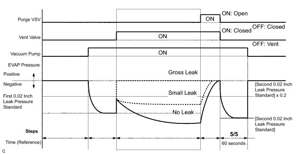 (b) Compare the EVAP pressure in step 3/5 and the second 0.02 inch leak pressure standard (step 5/5).
