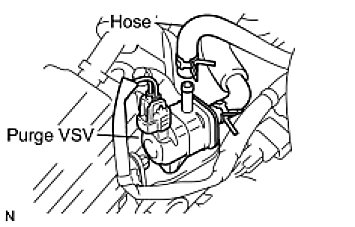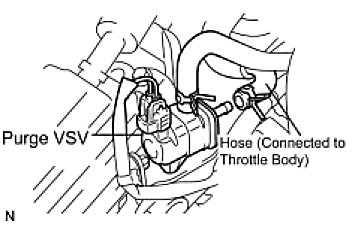 (a) Disconnect the hose (connected to the throttle body) from the purge VSV.