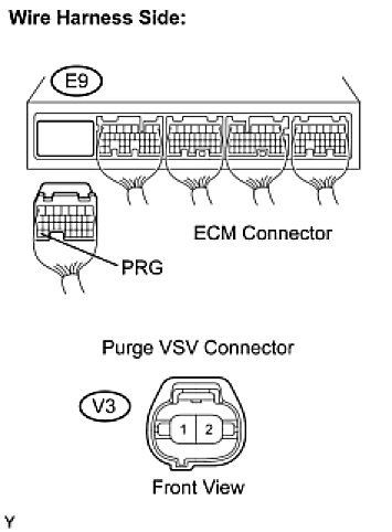 (a) Disconnect the E9 ECM connector and the V3 purge VSV connector.