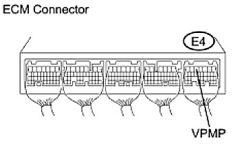 (c) Measure the voltage between terminal VPMP of the ECM connector and body ground when the vent valve is turned ON (close) and OFF (vent) using the tester.
