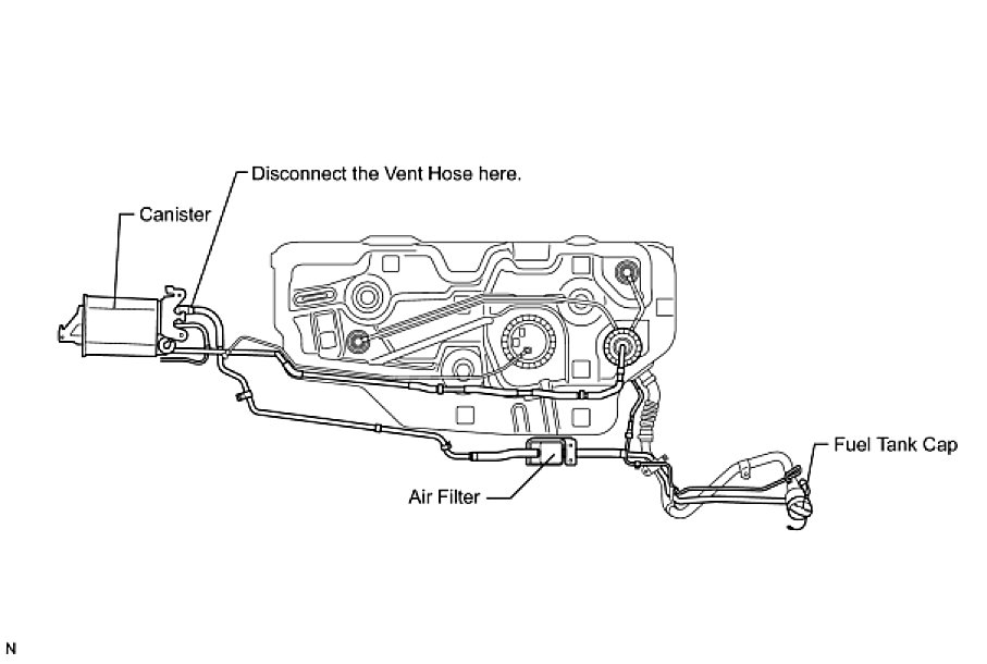 NOTE: When replacing the canister, check the canister pump module interior and related pipes for water, fuel and other liquids. If liquids are present, check for disconnections and/or cracks in the following: 1) the pipe from the air inlet port to the canister pump module; 2) the canister filter; 3) the fuel tank vent hose.
