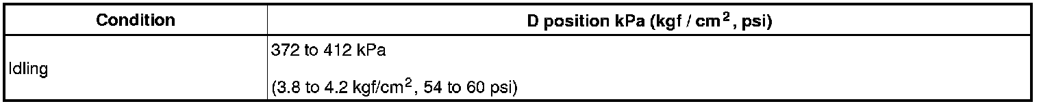 (11) Firmly depress the brake pedal, shift to the D position, depress the accelerator pedal all the way down and check the line pressure while the stall test is performed.